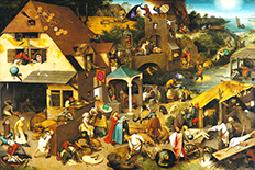 Und "Die niederländischen Sprichwörter", ein Ölgemälde des holländischen Maler Pieter Bruegels des Älteren. Das 1559 entstandene Werk enthält über 100 niederländische Sinnsprüche und Redewendungen. Man kann es sich in der Gemäldegalerie der staatlichen Museen zu Berlin ansehen – ohne unsere Ostereier.